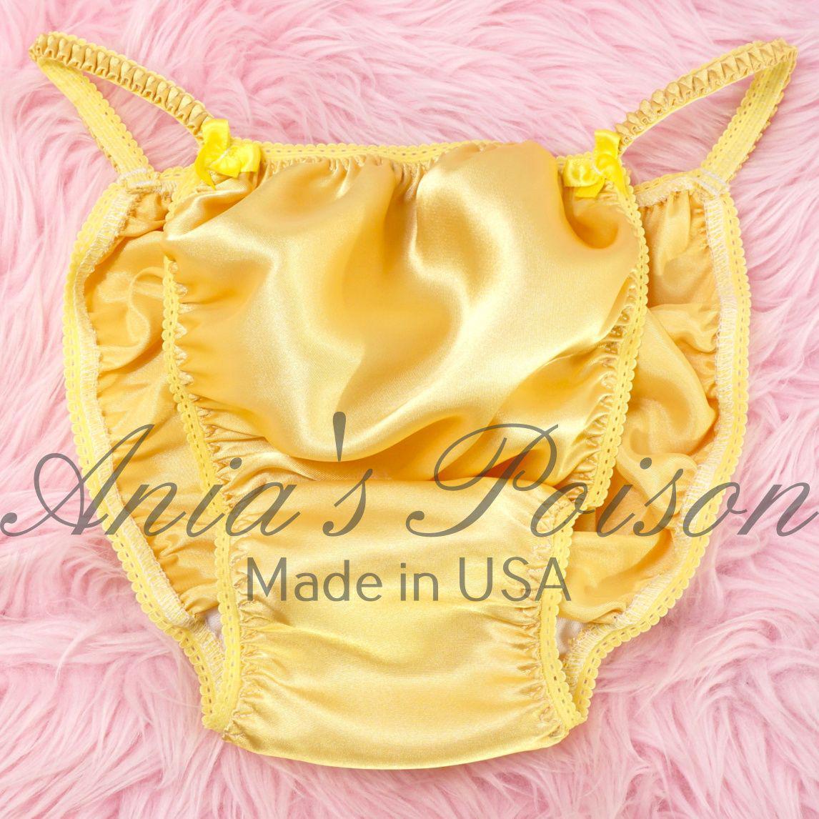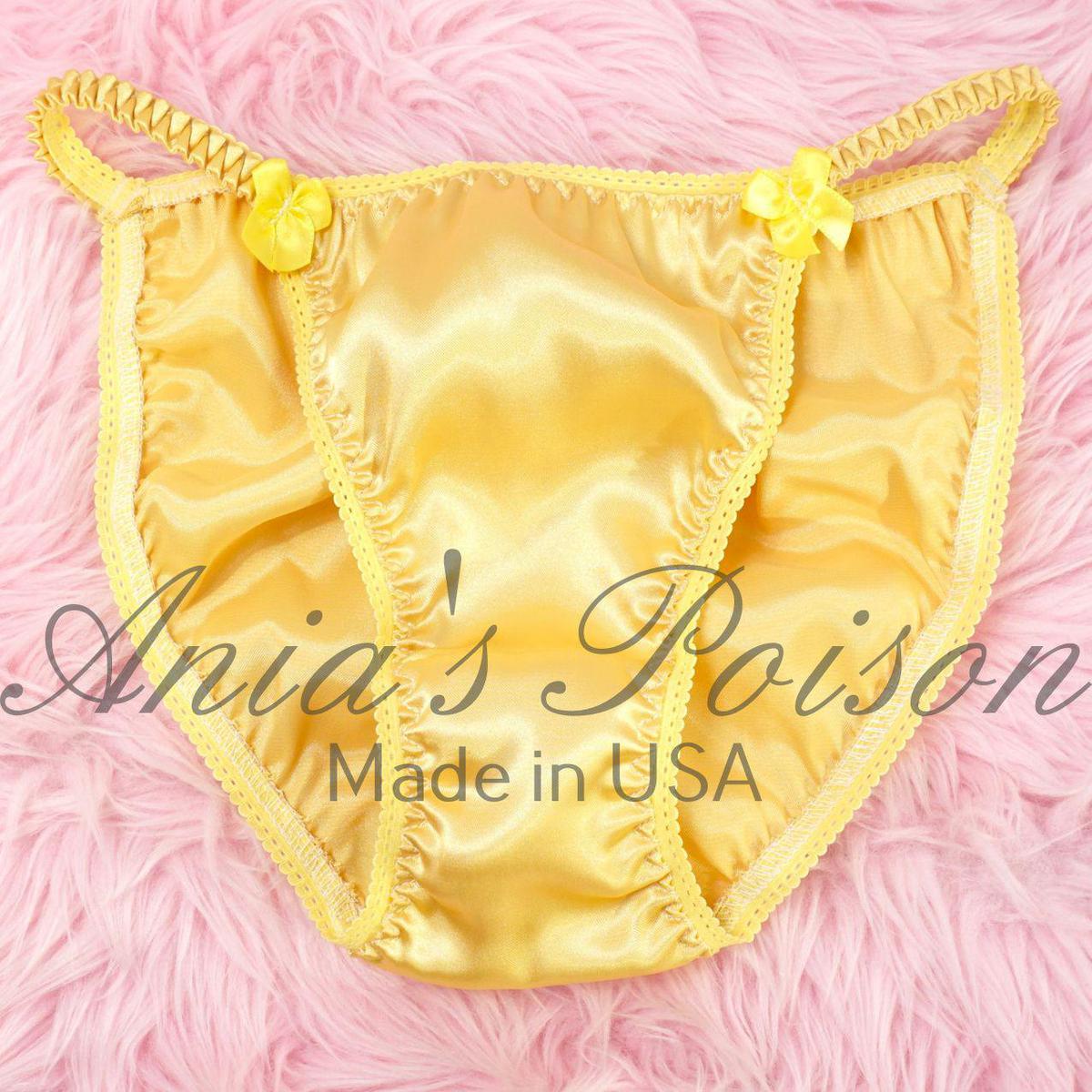 Ania's Poison Cut Panties MENS SATIN Golden Yellow Shiny Silky wet look Mens string Bikini panties S-XXL Bandeau Set 19,99 $ Add to cart