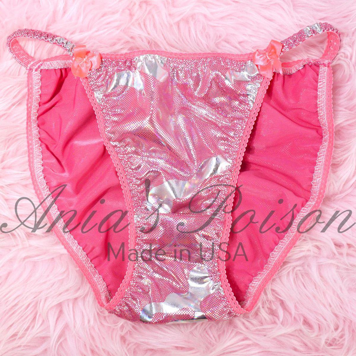 Ladies Lace Duchess cut String Bikini satin Soft HOT PINK Valentines shiny metallic foil Panties size 5- 9 19,99 $ Add to cart